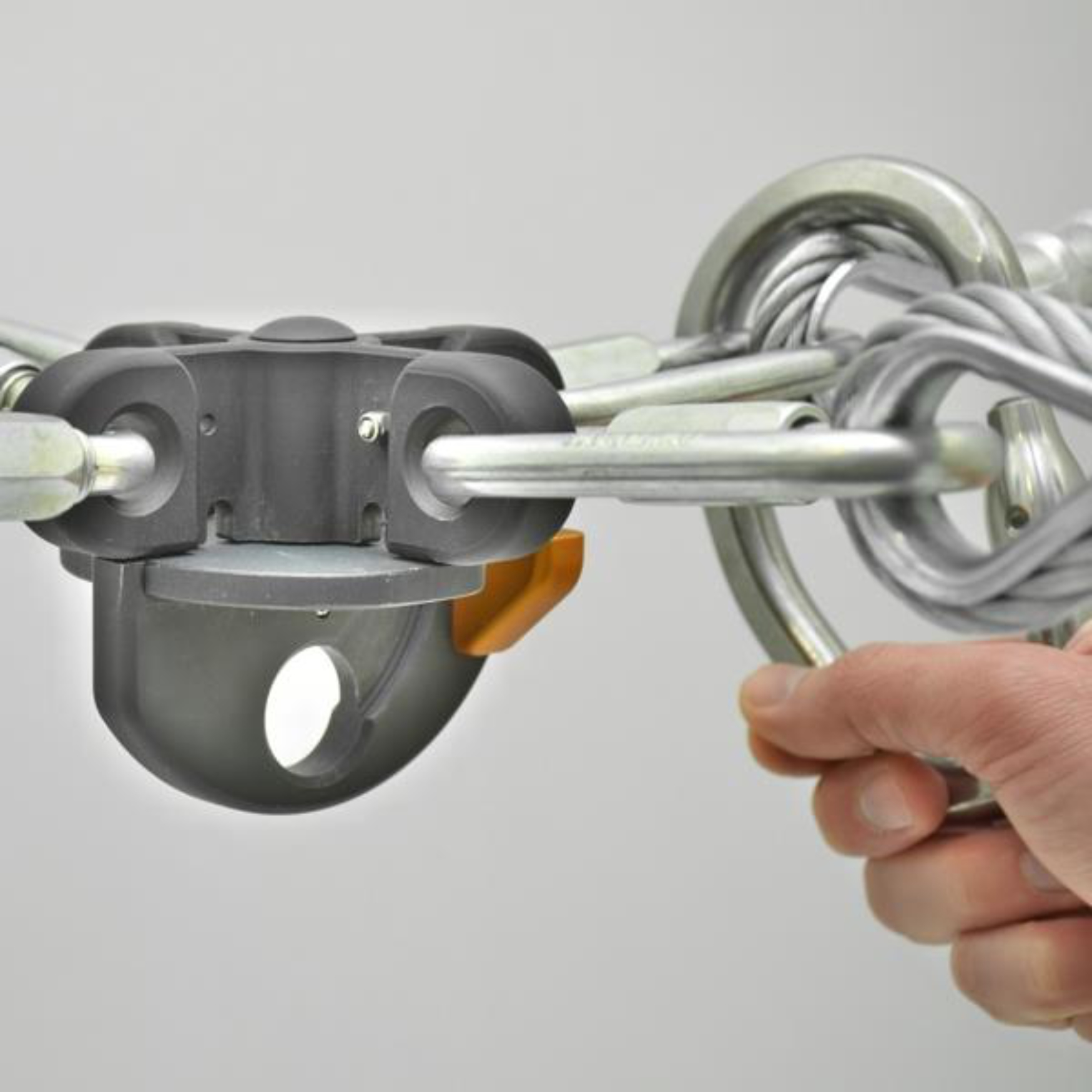 Načelo rada je vrlo jednostavno: otvor kuke manji je od promjera sajle, ali veći od debljine ploča. Na taj je način sigurnost zajamčena.